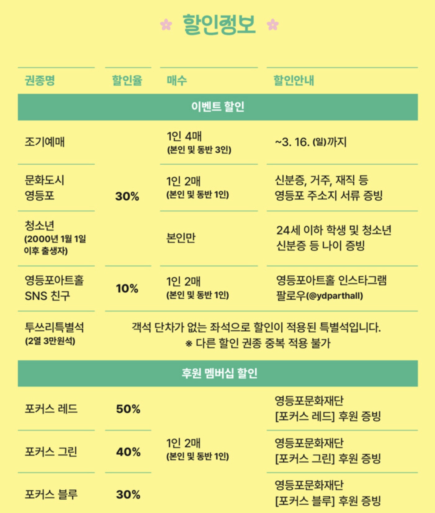 - 예매처: 인터파크, 예스24, 멜론티켓